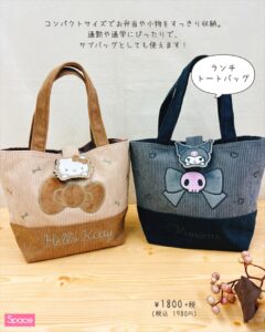 ホーム おすすめ紹介季節のおすすめ コーデュロイバッグ カテゴリー 季節のおすすめ キャラクター・アニメサンリオ冬アイテム生活雑貨秋アイテム 今の季節にピッタリ! コーデュロイ素材のバッグが入荷しています! キティとクロミちゃんの2種類あります。 ・ポシェット ・ランチトート ・トートバッグ シンプルデザインですので、コーデにも合わせやすいです(^^) 秋冬のお出かけにぜひチェックしてみてくださいね♪ 各店舗によって在庫は異なります。 詳しくは最寄りの店舗へお尋ねください! 公開日: 2025.11.20