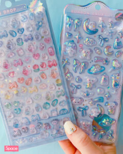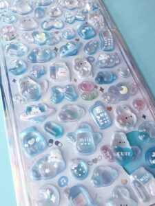 今年は、プチタイプやオーロラタイプ、フローズンタイプ、フロッキータイプなど新しい素材のシールも登場しました。